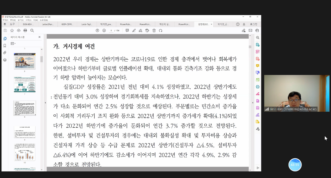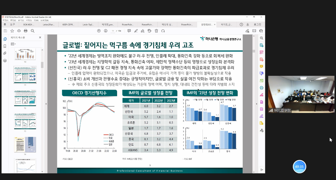 In his lecture, Prof. Kim focused on the analysis and revision of forecasts for the world economy, the economies of China, the United States and Korea. He also analyzed the changing responsibilities of central banks in the new era, such as the need to intervene in income redistribution issues. Prof. Kim contributed an insightful lecture by incorporating the impact of U.S. monetary policy on the Chinese and Korean economies into every part of the lecture.