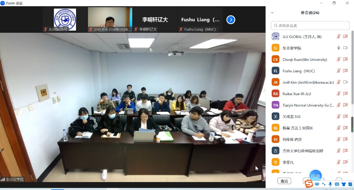 During the question and answer session, students who attended the lecture both online and in person raised questions and Professor Kim answered them with great care and enthusiasm. At the end of the lecture, Prof. Xuan expressed her gratitude to Prof. Kim and hoped that he could come to the Northeast Asian Studies College of Jilin University to give a lecture in the future.