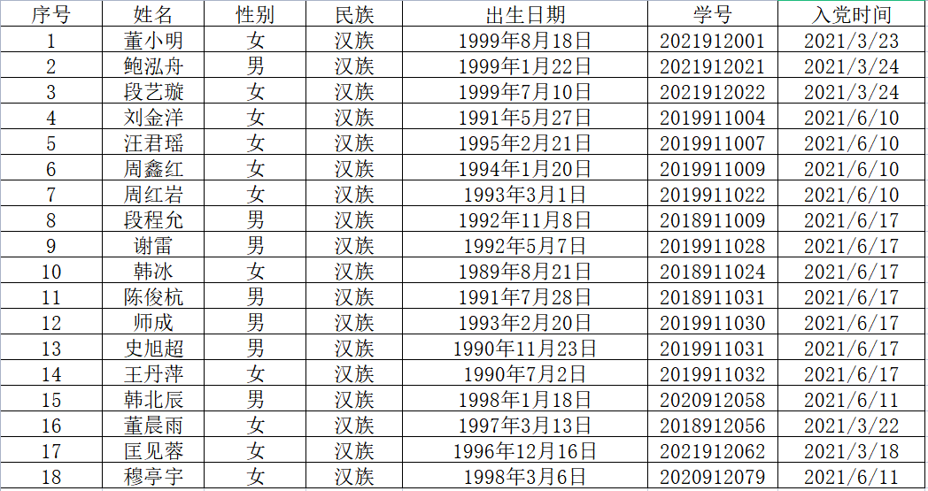 在听取党员、群众意见的基础上,经支部委员会审查,拟将董小明等18位同志转为中共正式党员。根据发展党员工作有关要求,现将其有关情况进行公示。
