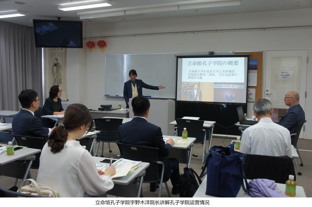 10月13日,调研团队在沈海涛教授的带领下启程前往日本。在为期8天的调研期间,调研团队访问了同志社大学、立命馆大学经济学部、立命馆大学孔子学院、多摩大学、工学院大学孔子学院、武藏野大学孔子学院,深入了解日本孔子学院的运营情况。立命馆大学孔子学院宇野木洋院长、工学院大学孔子学院高桥惠子院长分别就两家孔子学院的成立背景、运营情况、主要成绩以及面临的问题做了专题讲解,并与调研团队进行座谈,详细回答了调研团队提出的问题。在武藏野大学孔子学院调研期间,调研团队还参加了孔子学院总部汉考国际和日本青少年育成协会主办的第四届HSK中国留学·求职会,现场了解了日本学生对汉语学习的意愿和日本社会对汉语人才的需求状况。此外,调研团队还访问了同志社大学、多摩大学等未设立孔子学院的日本大学,对这些大学的汉语教学状况进行调研,了解了各大学对合作设立孔子学院的态度。在日期间,每日调研工作结束后,调研团队都结合当天的调研情况进行总结,及时整理资料,交流感想。