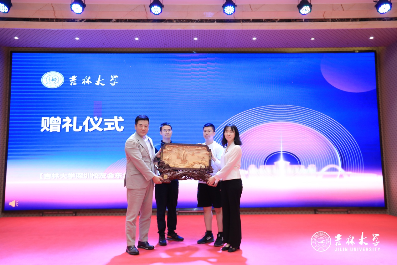校友会东北亚分会(筹)向深圳校友会东北亚分会赠送贺礼。