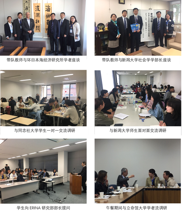 调研期间,访学团先后赴环日本海经济研究所(ERINA)、新潟大学、同志社大学、立命馆大学等知名大学和研究机构,与日方学生和研究人员就中日两国相互认知、国家形象、历史文化和经济社会问题进行广泛交流和深入探讨。环日本海经济研究所调查研究部部长新井洋史研究员、新潟大学经济学部沟口由己教授、法学部真水康树教授、同志社大学法学部浅野亮教授、立命馆大学经济学部松野周治教授、经济学部斋藤敏康教授等多名经济学、国际政治学和社会学领域的资深学者为我院师生举办了主题讲座,并组织日本在校学生与我院研究生进行座谈交流,中日两国学生间交流顺畅,气氛活跃,学生收获颇丰,交流和考察活动取得了良好的效果。访学团赴日本调研活动被国家级媒体人民网即时跟踪报道,受到国内外广泛关注与好评。