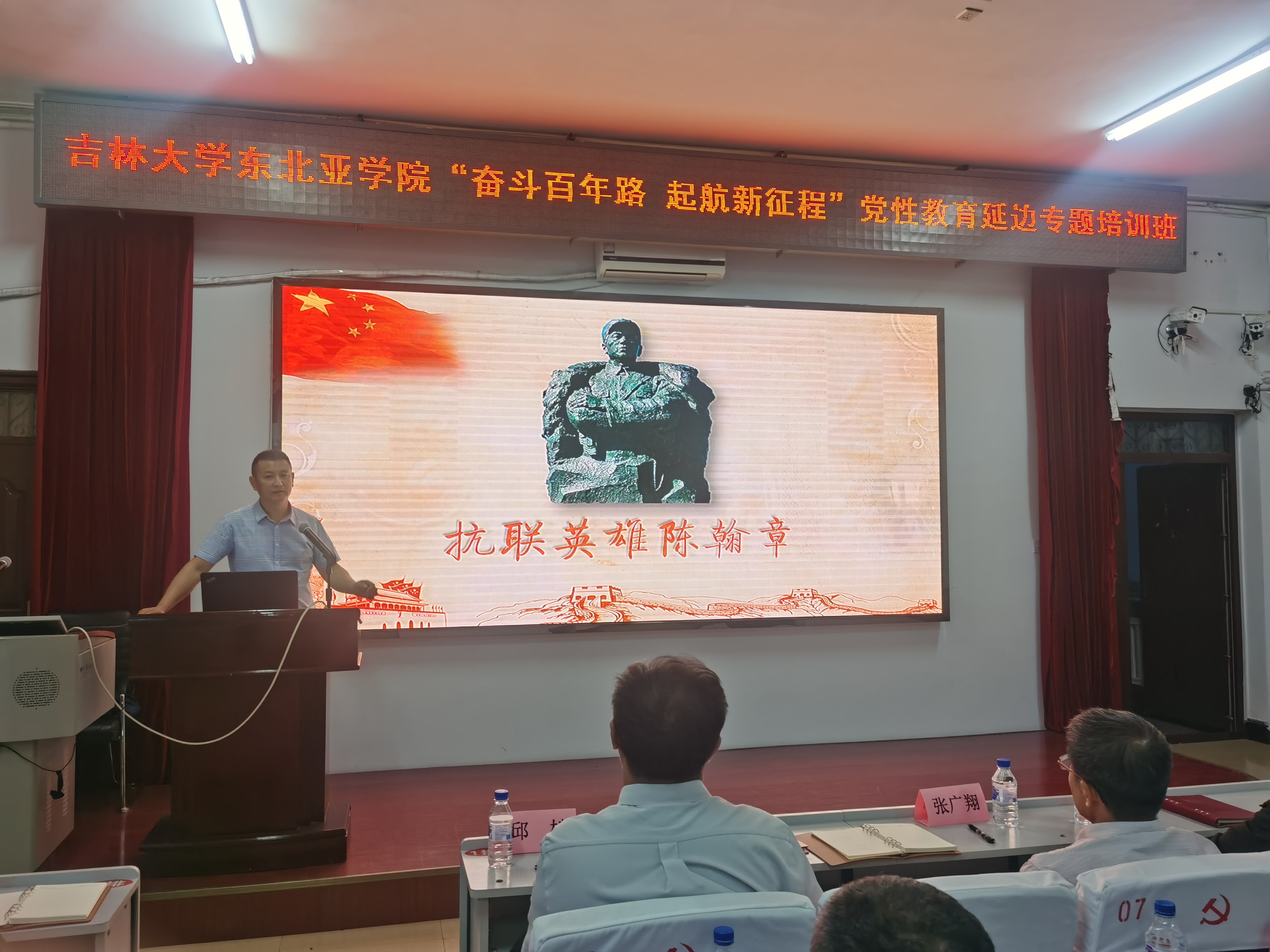 开班仪式后,培训正式开始。中共敦化市委党校刘志超老师作《抗联英雄陈翰章》专题党课,讲述陈翰章烈士的主要英雄事迹和革命精神。讲座内容丰富、史料翔实,学员受益匪浅、反响热烈。