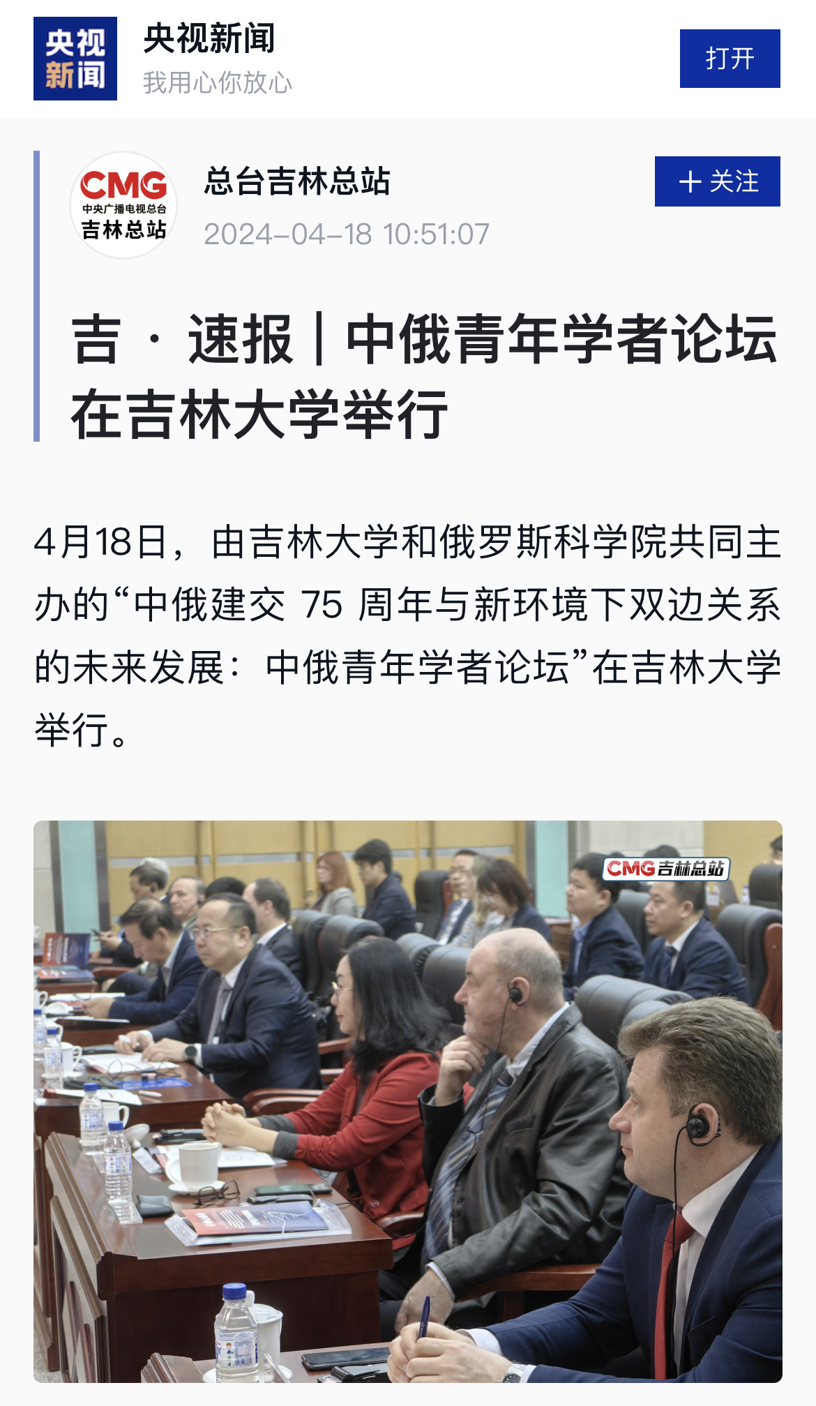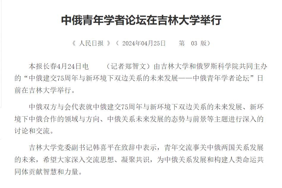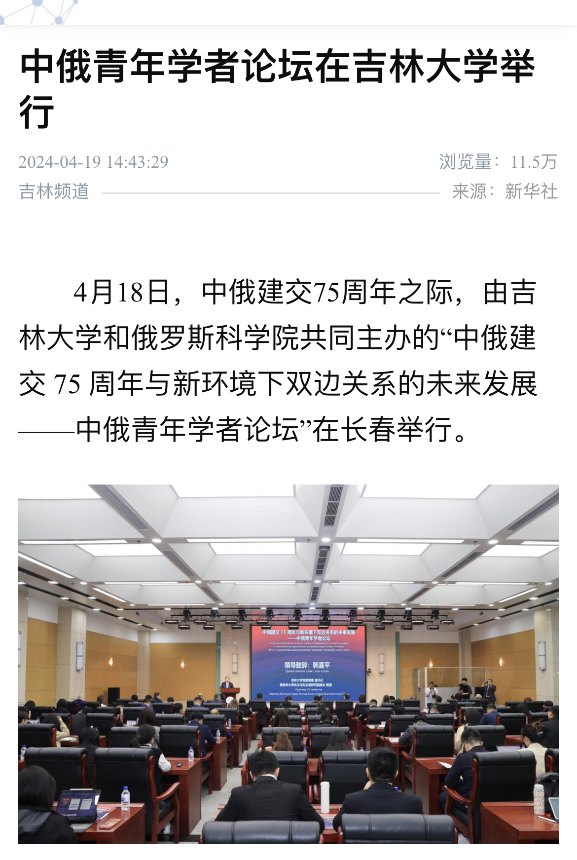 4月18日,中俄建交75周年之际,由黄色直播 东北与东北亚研究院、东北亚研究中心,黄色直播 、东北亚研究院,俄罗斯科学院中国与现代亚洲研究所主办,《东北亚论坛》编辑部协办的“中俄建交 75 周年与新环境下双边关系的未来发展——中俄青年学者论坛”在黄色直播 举行。