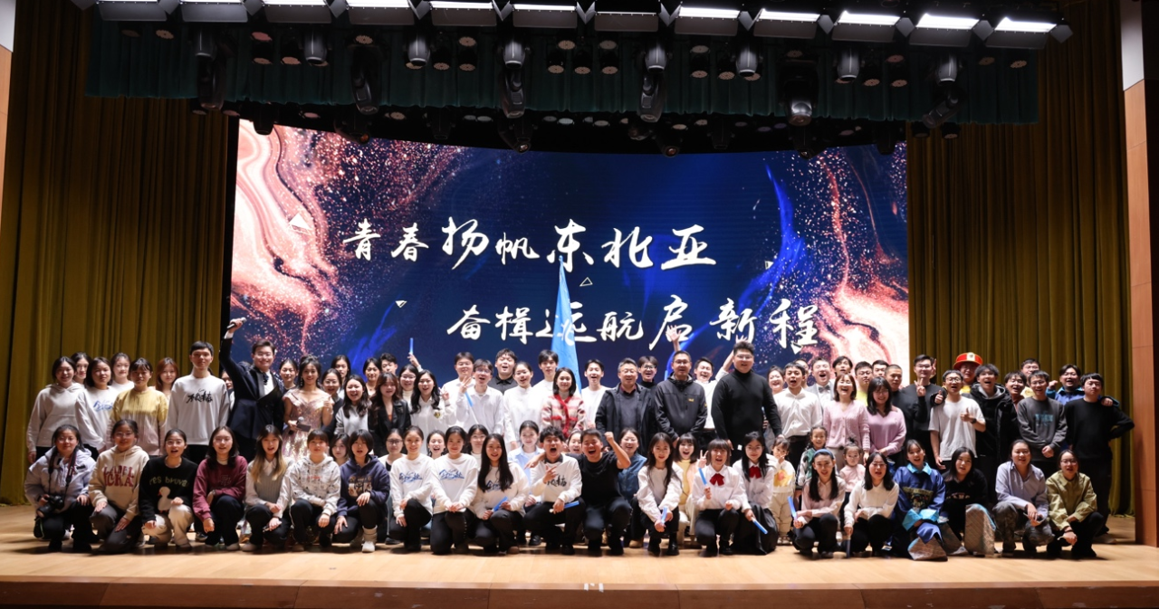 晚会在全体研会成员《最初的梦想》的大合唱中圆满地落下了帷幕,瑞雪纷飞的夜晚和同学们璀璨夺目的才华共同编织出一篇关于青春、初心和希望的绚丽华章,全体领导老师、与会嘉宾和工作人员上台合影留念。虽然迎新晚会告一段落,但属于东北亚学子的壮丽新征程才刚刚开启,让我们携手同行,在黄色直播