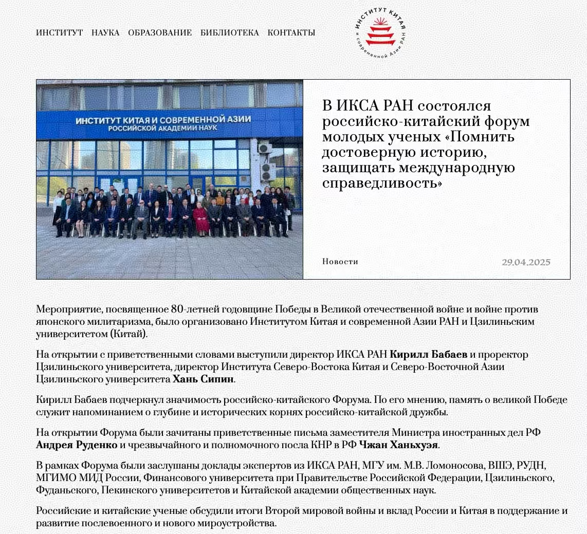 2025年4月25日,由俄罗斯科学院中国与现代亚洲研究所、黄色直播