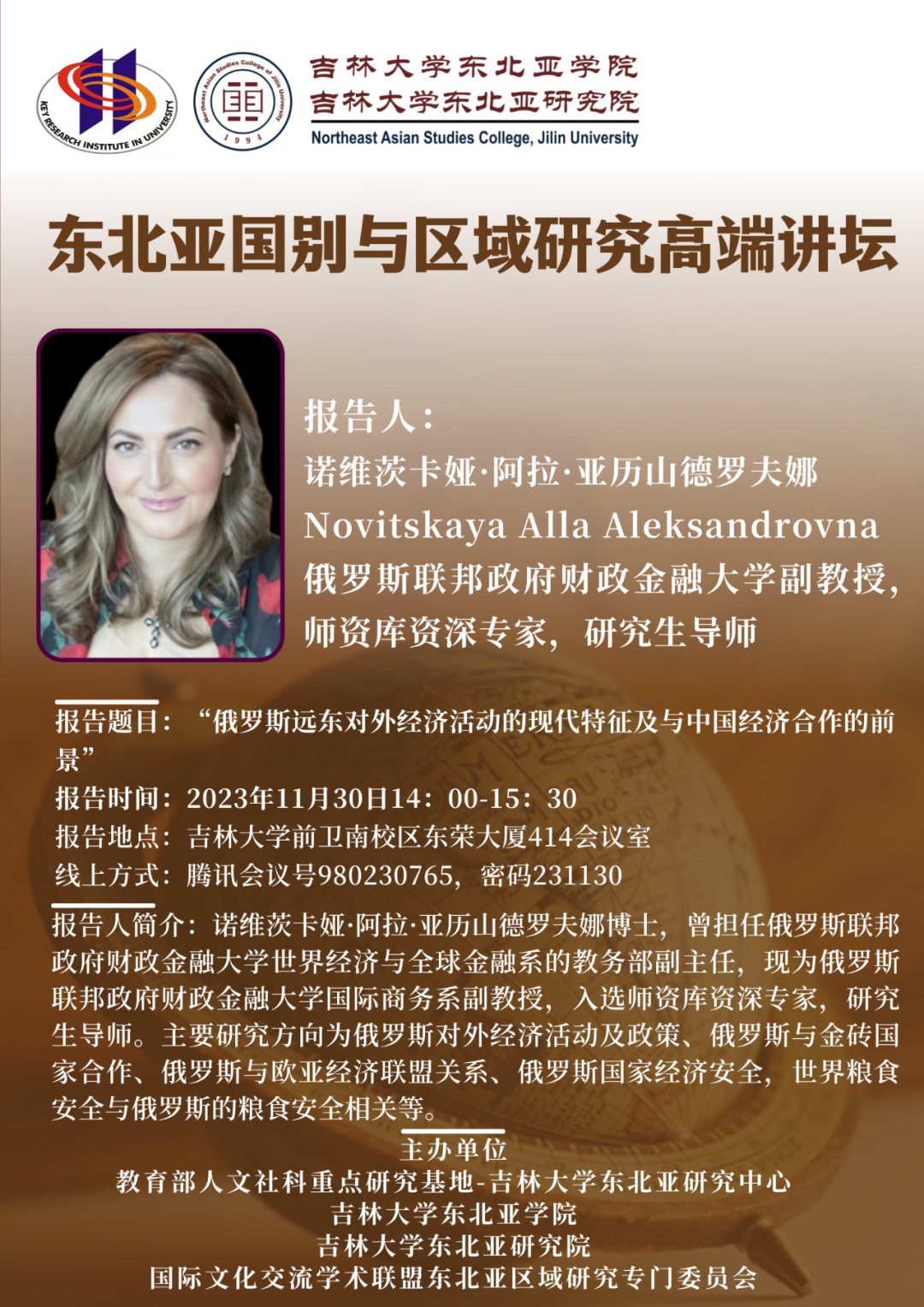 学术预告:东北亚国别与区域研究高端讲坛(2023年第26场)——俄罗斯远东对外经济活动的现代特征及与中国经济合作的前景