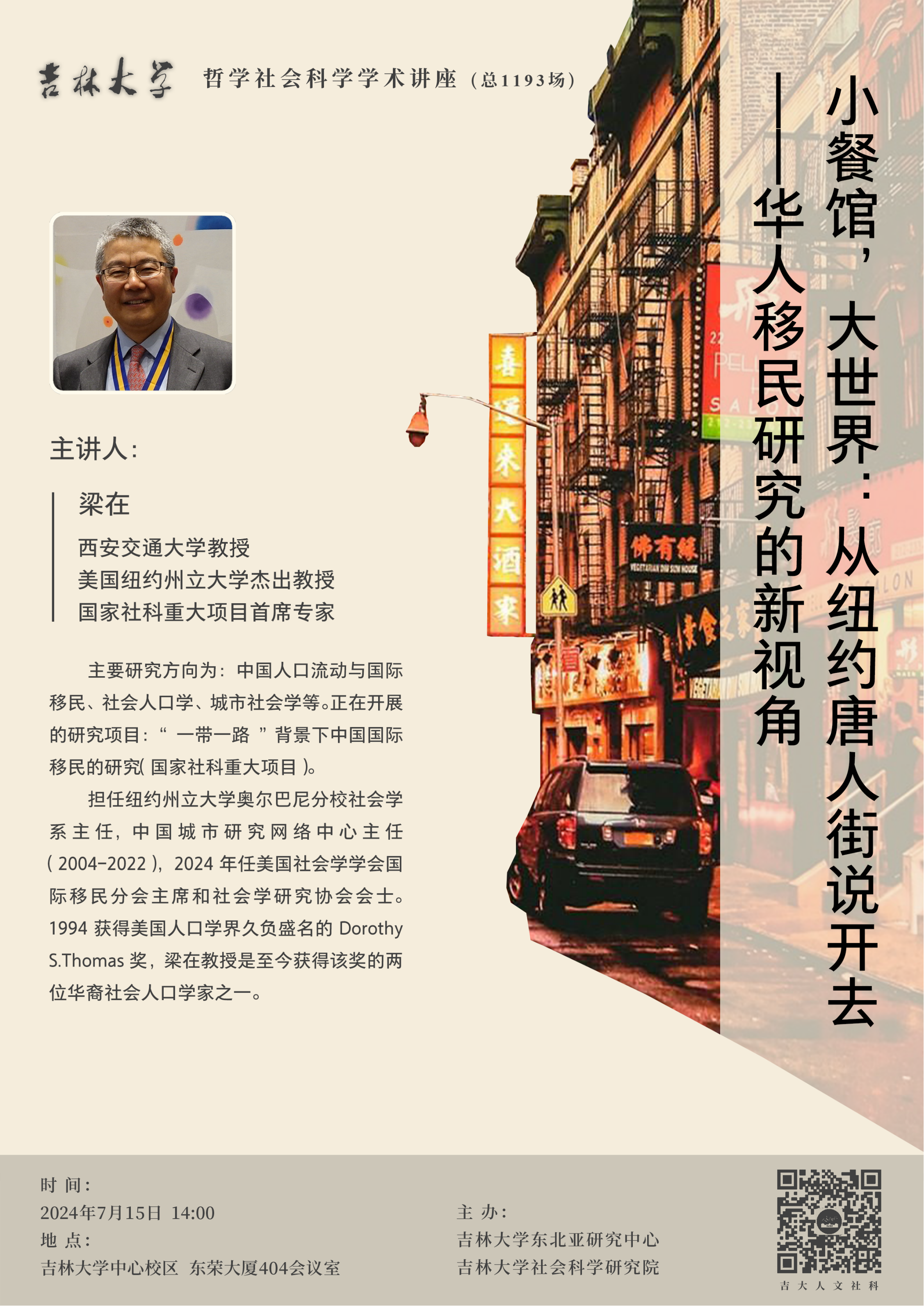 学术预告: 黄色直播 哲学社会科学学术讲座——“小餐馆,大世界:从纽约唐人街说开去——华人移民研究的新视角”