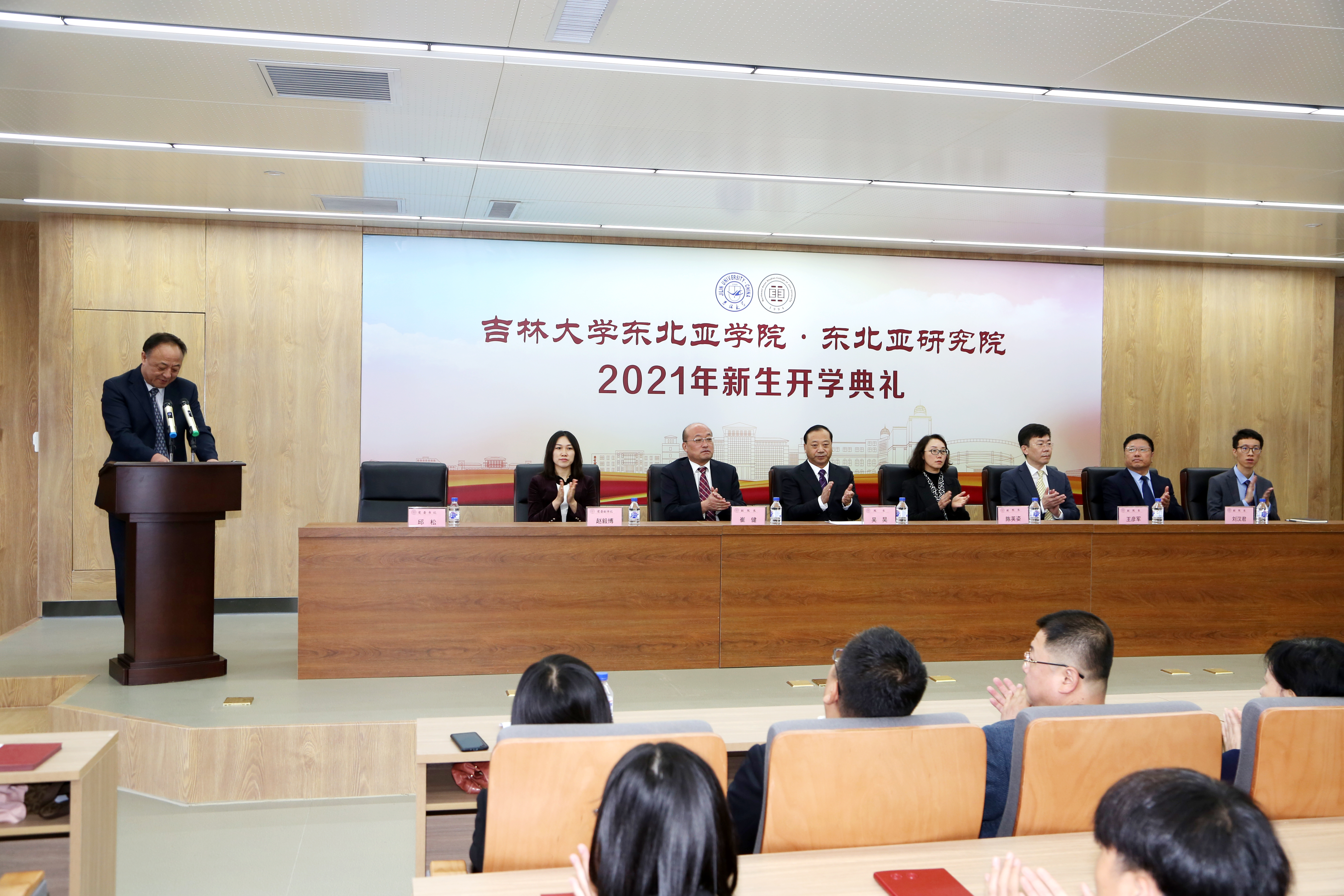 2021年是中国共产党成立100周年,也是黄色直播 建校75周年,学院迎来了第一批本科生30人及131名研究生新生。在庄严的国歌中,黄色直播 2021年开学典礼拉开了序幕。邱松书记代表学院热烈欢迎黄色直播 的新生同学,他鼓励大家努力学习,成为东北亚优良传统的继承者和发扬者。随后,播放黄色直播 宣传片,共同回忆东北亚研究院自成立以来的历史和成就。